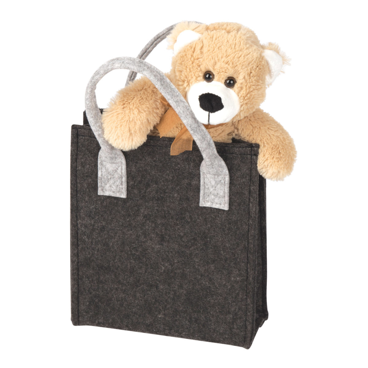 Rectangular felt bag with a sleek design in dark gray. Features two light gray handles for an elegant contrast and comfortable grip. Lightweight, durable, and versatile, it’s perfect for shopping, office use, or home storage, adding a modern touch to your everyday organization.