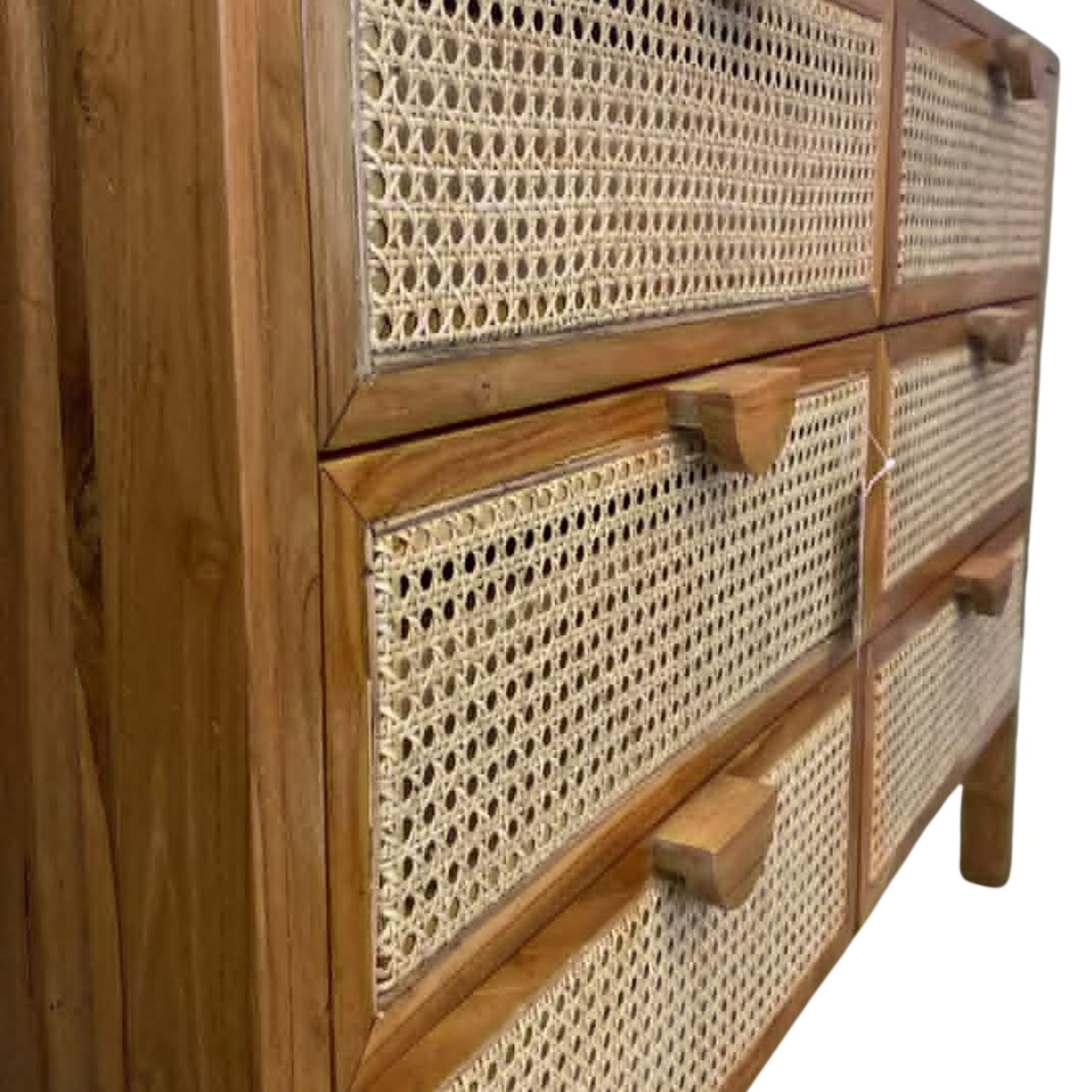 #Natural rattan chest of drawers with 6 drawers, bohemian style