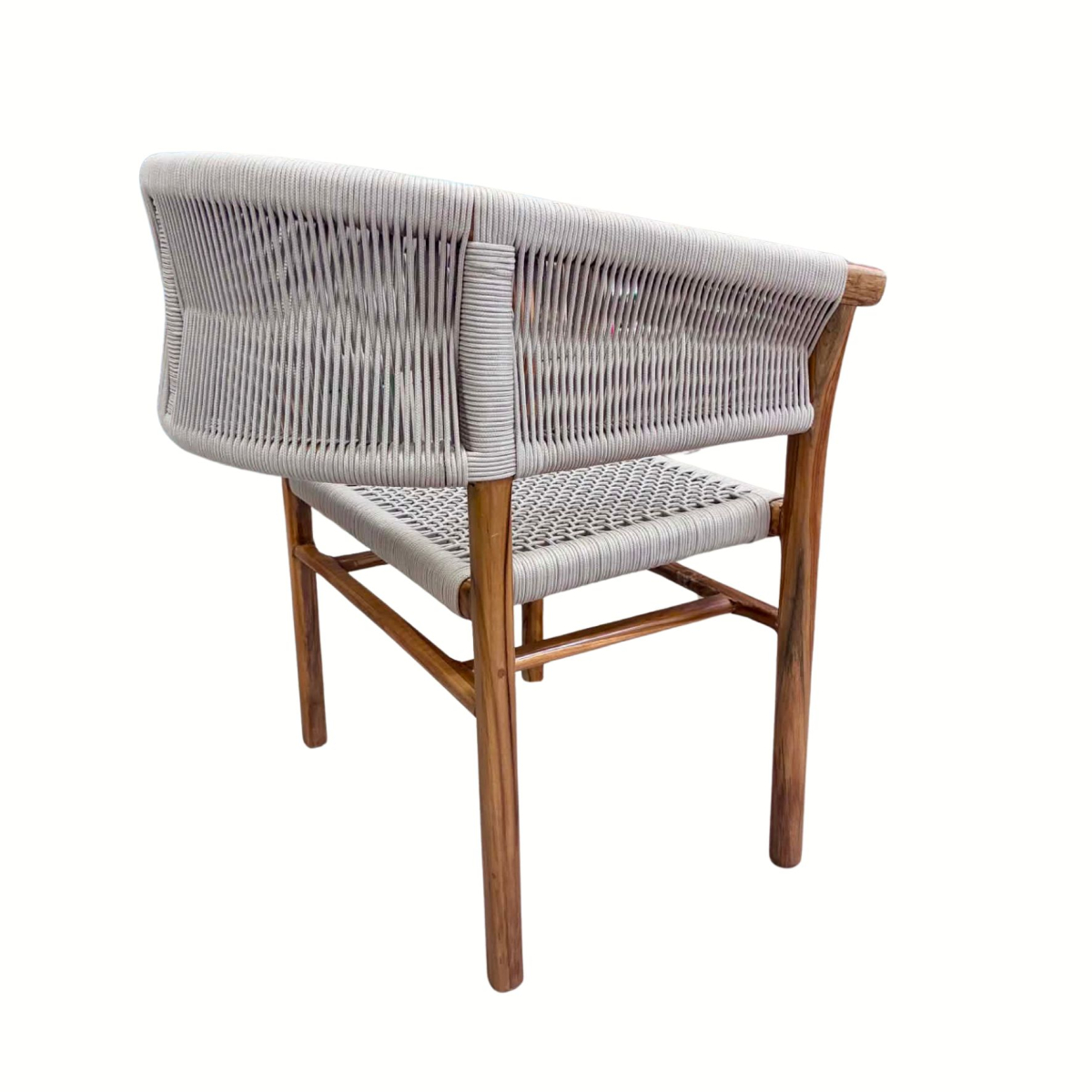 #Mahogany wood chair with beige rope and armrests, interior design