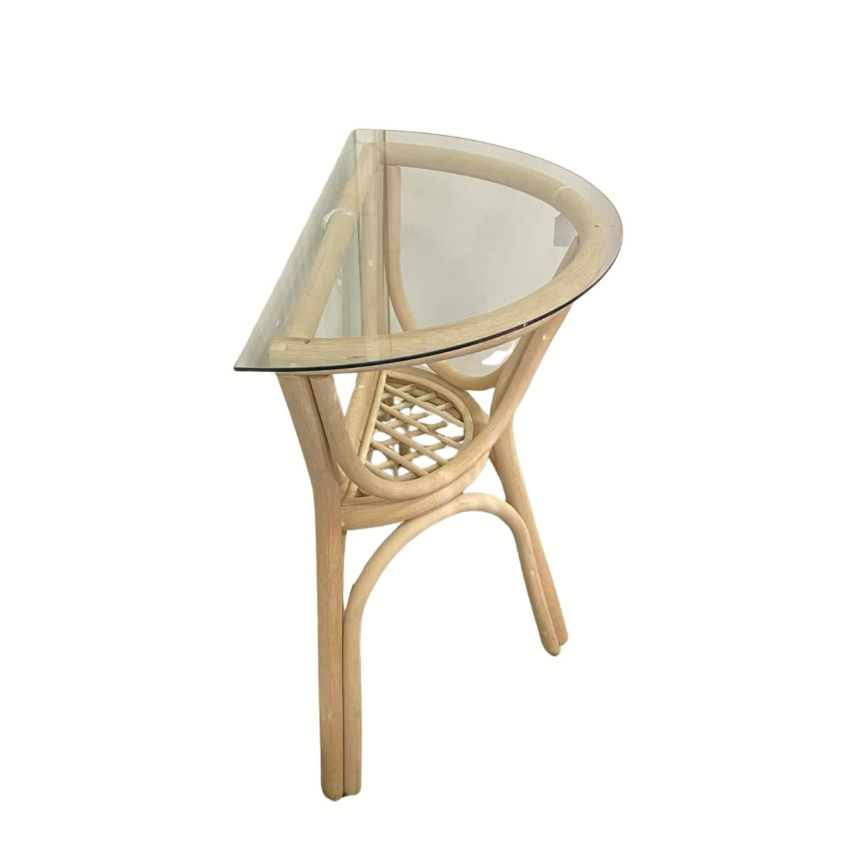 Console moelle en rotin brut avec verre