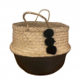 Panier thaïlandais doté de deux anses et décoré de pompons.