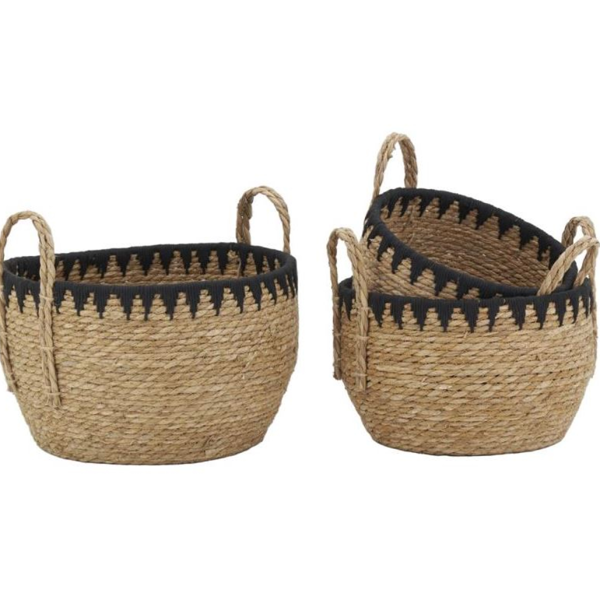 Apportez une touche naturelle et chaleureuse à votre intérieur avec ce cache-pot en jonc tressé, sublimé par une délicate bordure en laine noire.