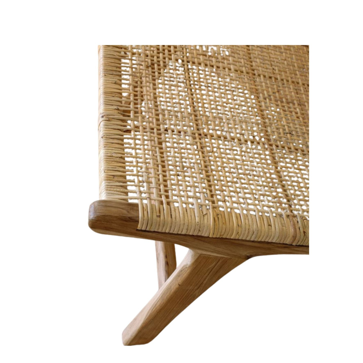 • Finition : bois poncé, teinte claire, aspect mat naturel / Rotin au coloris beige clair, finition brute ou légèrement vernie / Tissage régulier, respirant et souple pour plus de confort