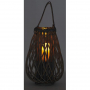 Lanterne en osier gris ajouré avec photophore en verre à l'intérieur et anse en corde.